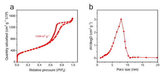 Hình 1: Đường cong giải hấp hấp phụ nitơ và phân bố kích thước lỗ rỗng